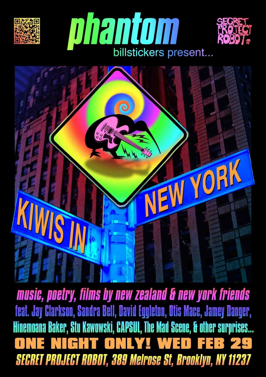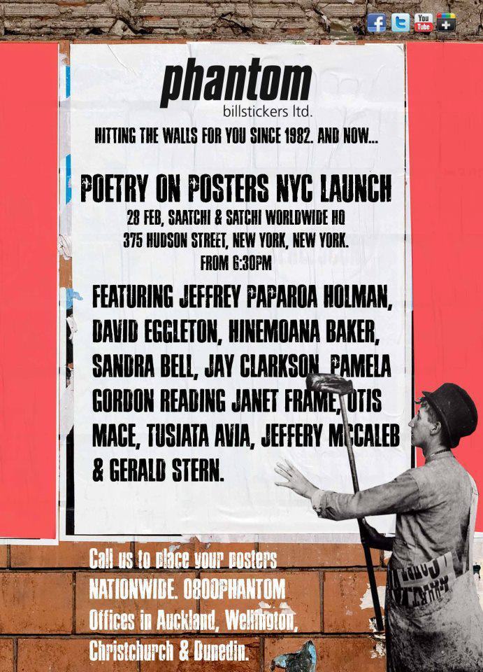 With support from Creative New Zealand and Saatchi and Saatchi, this trip is courtesy of Phantom Billstickers, Transatlantic poetry fanatics and street media moguls, and in particular Phantom founder Jim Wilson. Jim tells the story of the genesis of this project here.