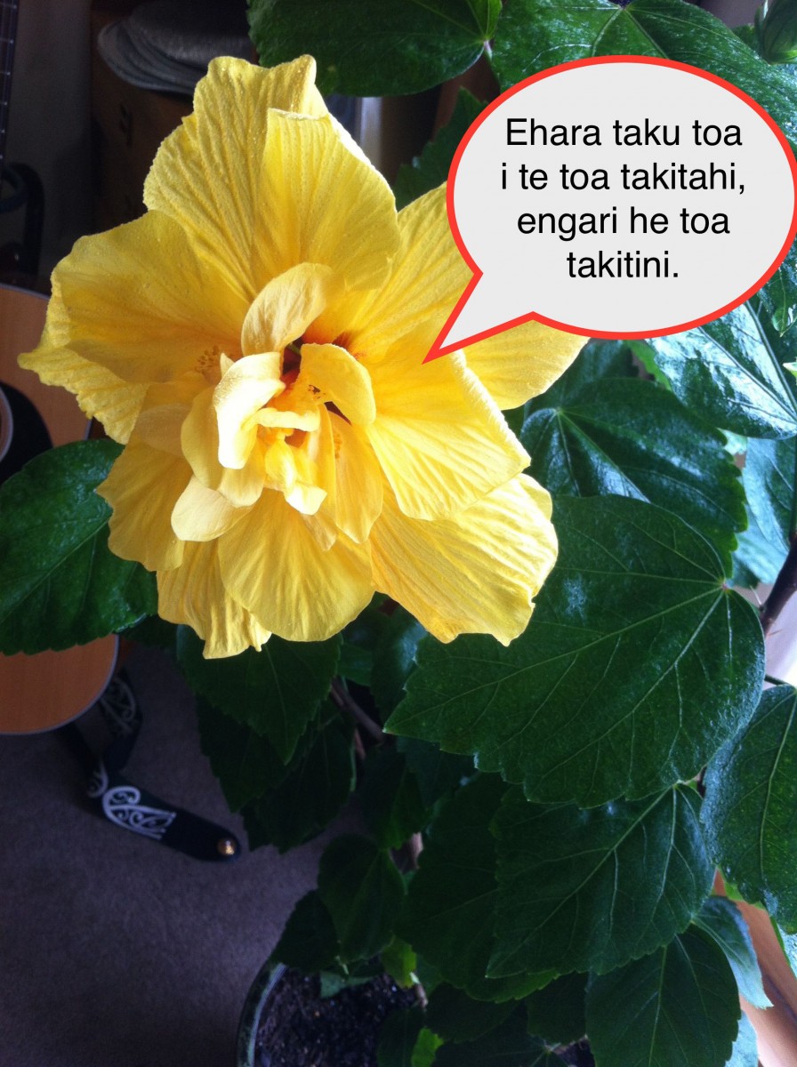 'My strength is not the strength of one, but the strength of many.' And wow, a reo-talking hibiscus.
