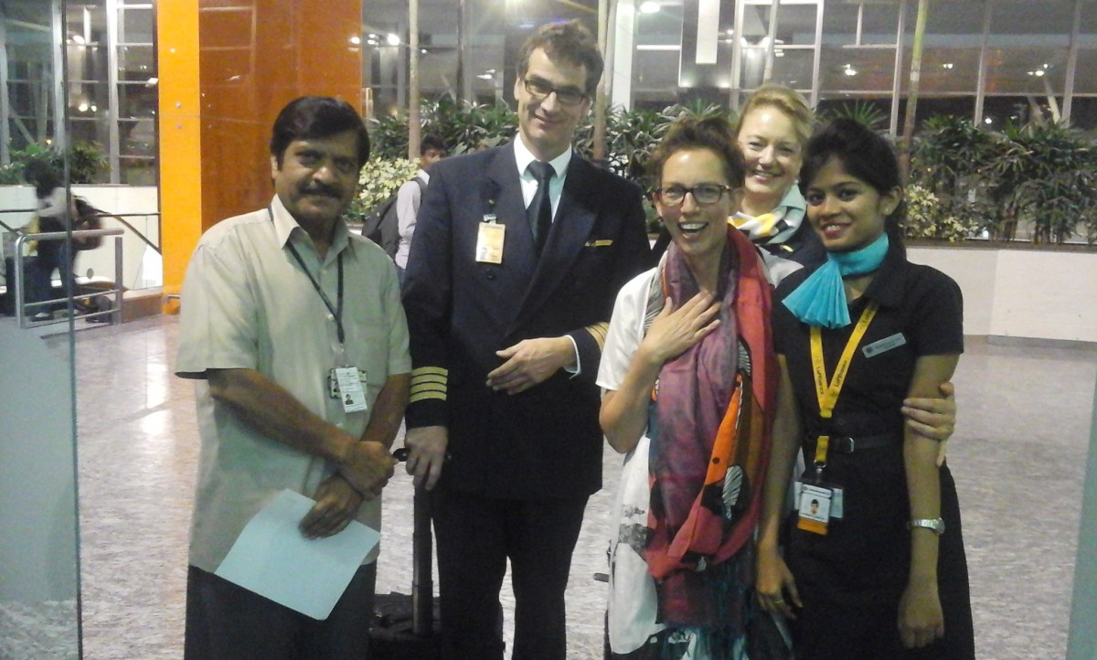 Yes, that’s me, standing at Bangalore Airport in India, with the captain and chief purser of Lufthansa flight 755. To our right is Dr. D. Sudhakar, the man who put me on an intravenous drip in the airport hospital clinic (because they have one, god bless them, at Bangalore airport). On my left, not entirely happy about being squeezed so hysterically by me, is the young Lufthansa staff member who had to try and lift me off the floor in the bathroom where I had, to all intents and purposes, kind of collapsed. Slowly, over the course of an hour or so.